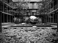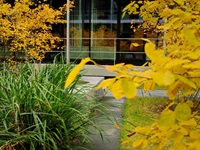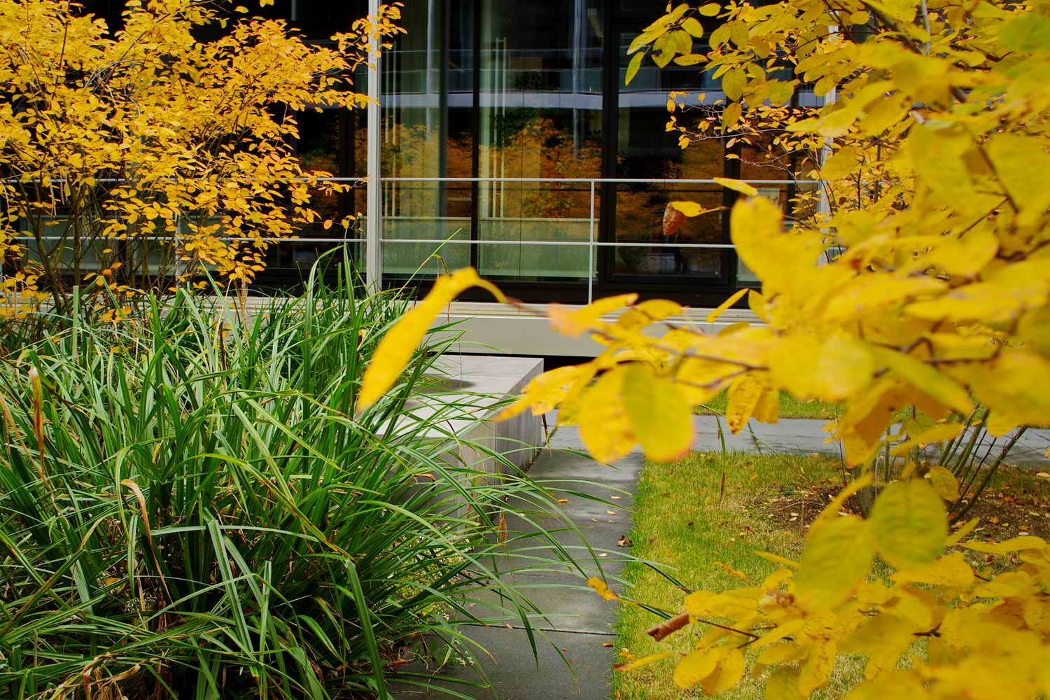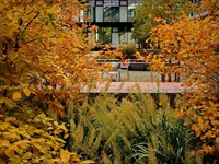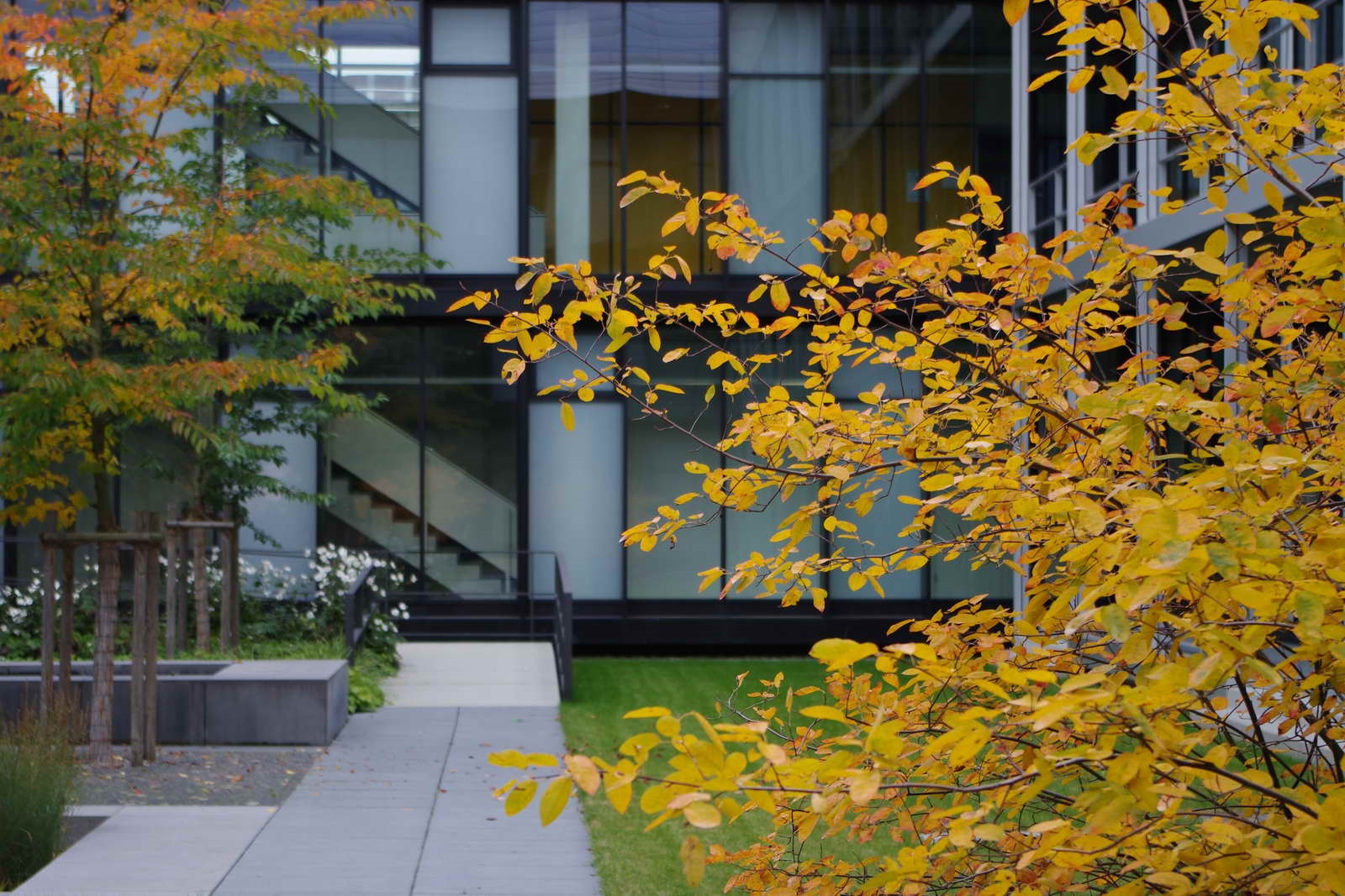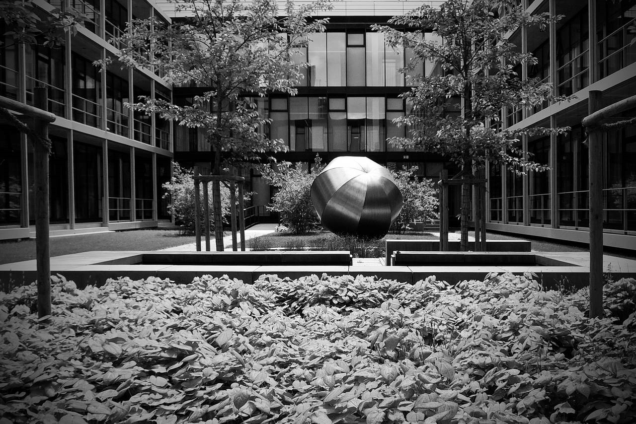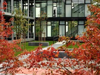 Durchstreift man die beiden neuen Innenhöfe, ist von der schwierigen und langwierigen Realisierung nichts mehr zu ahnen. Ruhige Gartenräume mit wenigen Elementen, die seit jeher einen Garten ausmachen: Wasser, Wege, Bäume, Blumen, Rasen. Die Höfe sind barrierefrei erreichbar, können so leicht in die Alltagswege durch die weitläufigen Gebäude eingebunden oder als Pausenort genutzt werden. Beim Blick aus dem Fenster bilden sich die Jahreszeiten in Blüten, Früchten und Laubfarben ab.