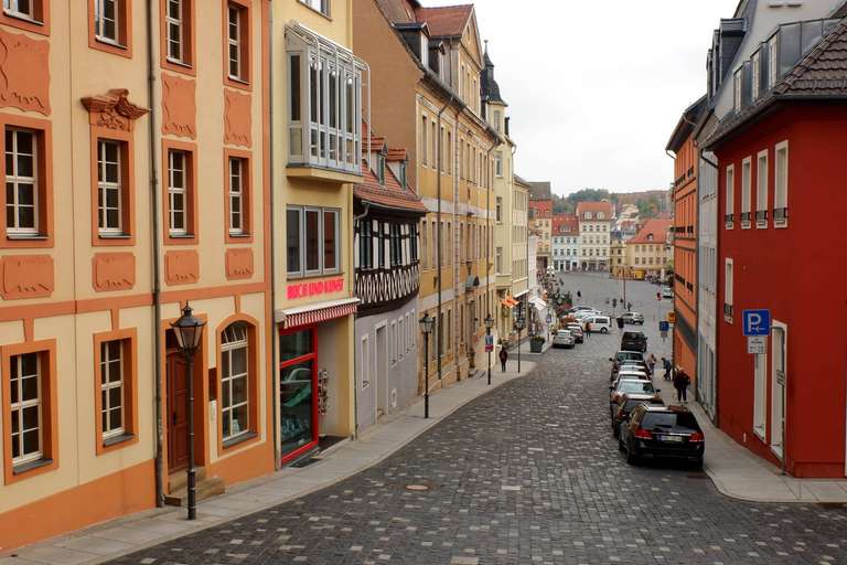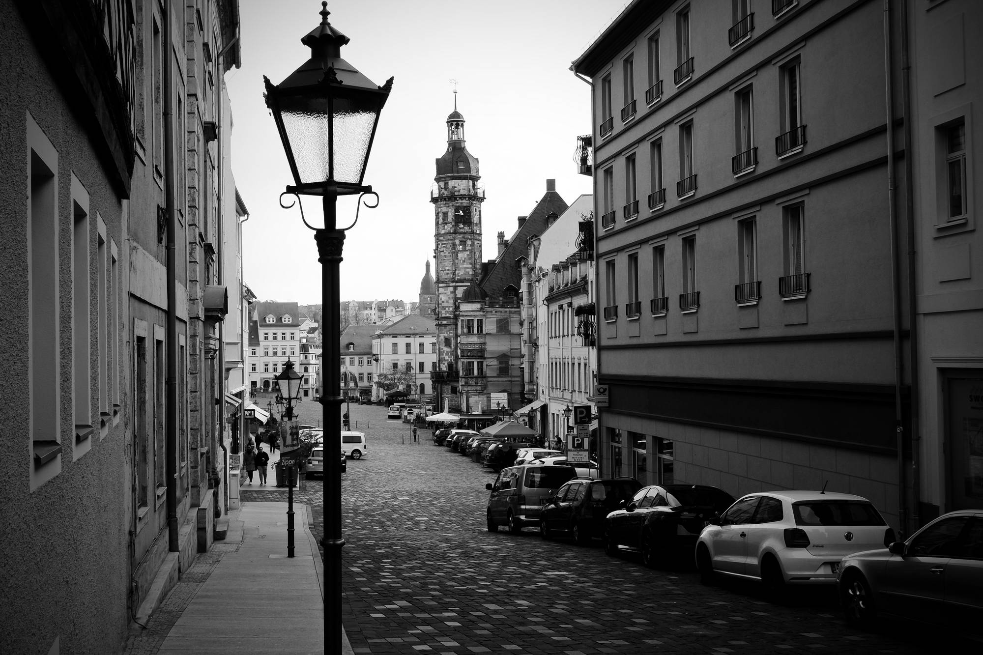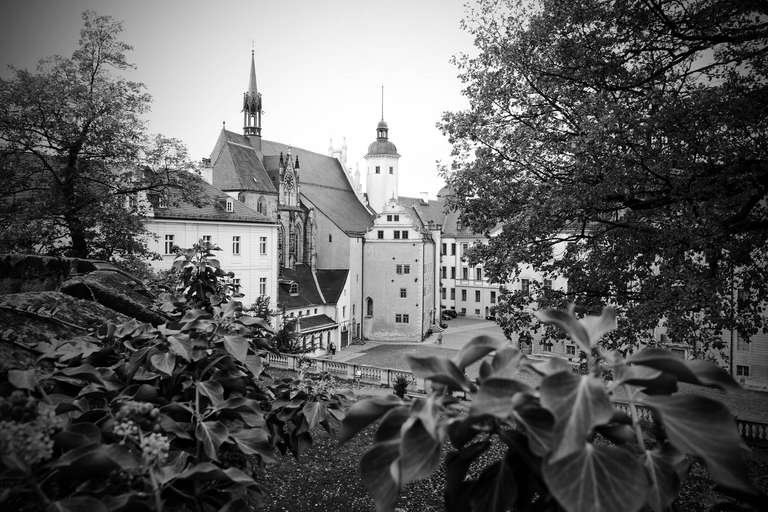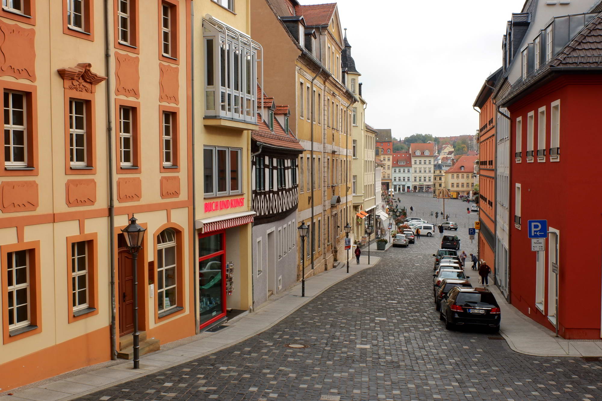 Vor der altehrwürdigen St. Bartholomäikirche begegnen wir auf dem weiten abgetreppten Platz Georg Burkhardt genannt Spalatin: ein weitgehend unbekannter Reformator, ohne dessen tätige Hilfe Martin Luther wohl kaum überlebt hätte. Er organisierte dessen „Entführung“ auf die Wartburg und gilt auch sonst als Steuermann der Reformation. Seit dem Reformationsjahr 2017 ist er nun als lebensgroße Plastik im Stadtbild wieder präsent, an der Stelle, wo er gut 20 Jahre lang wirkte und auch begraben liegt.