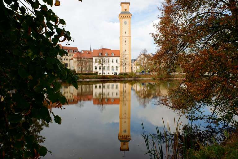 Selbstverständlich umfasst der absolvierte Stadtspaziergang andere wichtige Stationen in der Stadt, ohne sie namentlich, lediglich teils in Bildern, zu erwähnen: Schloss, Hauptmarkt, Bruderkirche, Nikolaiturm (geschlossen), Pohlhof, das letzte erhaltene Rittergut am Altstadtrand. Die Umrundung des Großen Teichs gehört eigentlich auch dazu, weil wir aber noch nach Dessau weiterwollten, haben wir uns mit einem Blick begnügt.