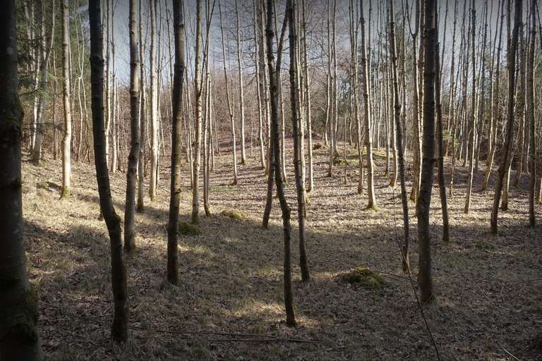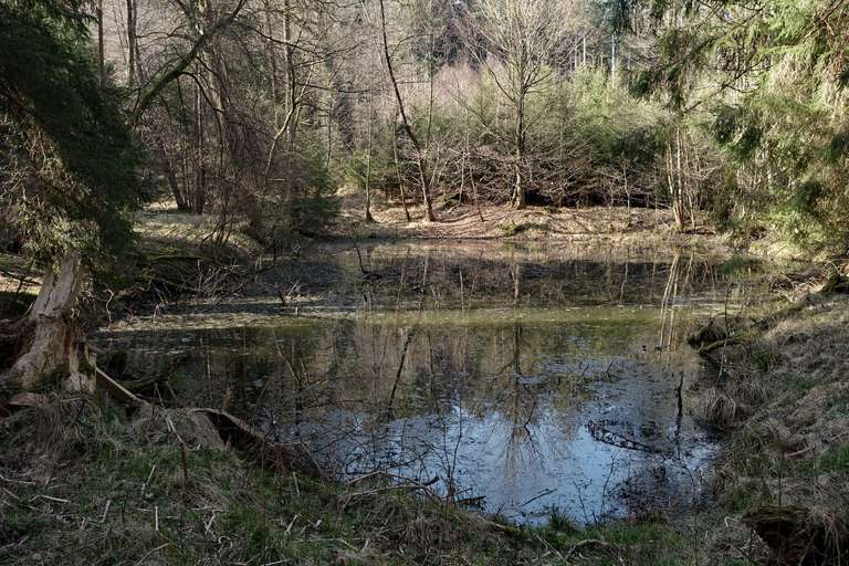 Die ganze Tour führt durch das Gelände der westseitigen Endmoränen des sog. „Inn-Chiemsee-Gletschers“ der letzten Eiszeit, der bis Haag reichte. Wer einmal das Gletschervorfeld eines zurückgehenden Gletschers besucht hat, hat eine Vorstellung, welche Schutthäufen er hinterlässt und welche Wüste zunächst. Dieser Gletscher war riesig und die äußerst kleinteilige Geländemodellierung der Gegend zeugt heute noch davon. Auch der Höhenrücken vom Dachsberg zum Kollmannsbrunnberg südlich von Kirchseeon ist eine hoch aufgeworfene, wallförmige Endmoräne. Ein weiteres typisches und bis heute häufig erhaltenes Merkmal sind die Toteislöcher, zurückgebliebene, abgetaute Eislinsen. Das erste besuchen wir mit einem kleinen Abstecher bei Reit, ein verborgener Tümpel im Wald.