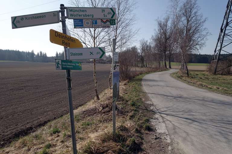 Eine weitere Etappe im äußeren S-Bahnbereich um München. Start am S-Bahnhof Kirchseeon, nach wenigen Schritten durch die Stadtrandsiedlung erreichen wir schnell den Forst unter dem Dachsberg und folgen einer deutlichen Trittspur neben einer wüsten Rückegasse. Im weiteren Verlauf der Strecke bewegen wir uns eigentlich ausschließlich auf Wirtschaftswegen und Nebenstraßen, typisch Voralpenland.