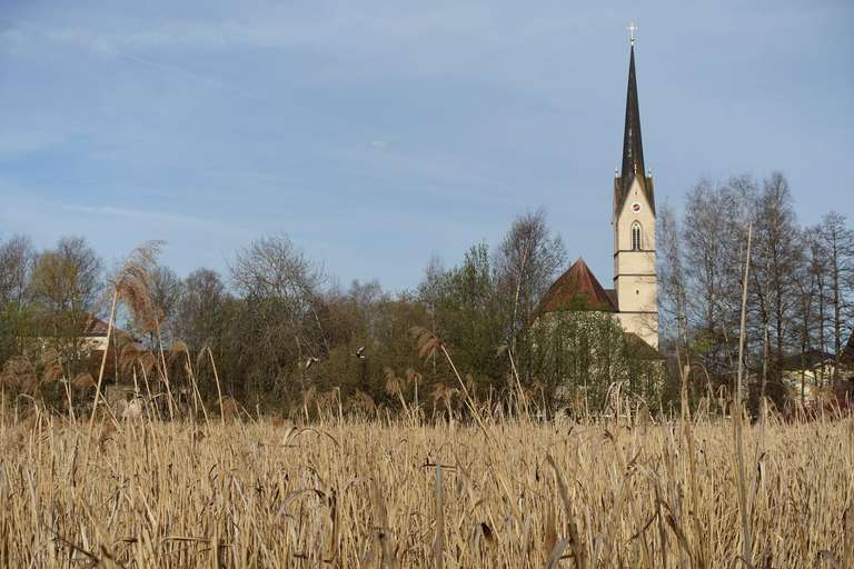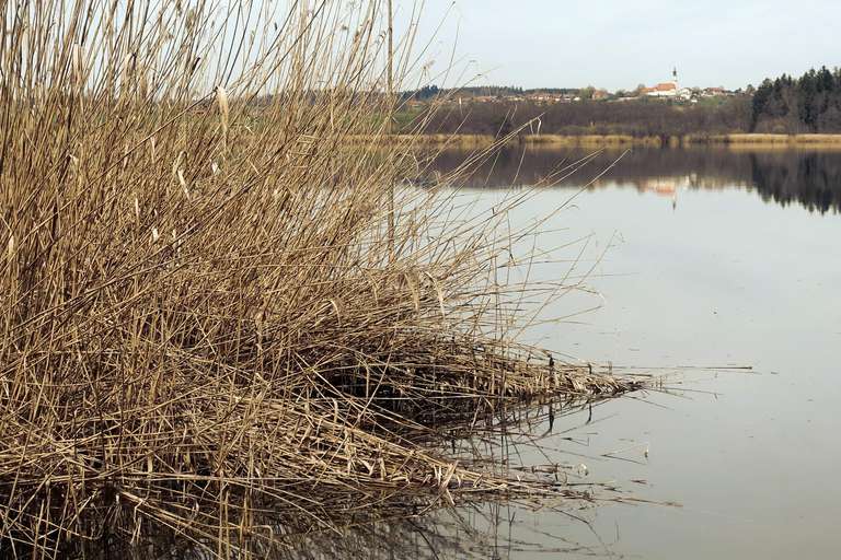 Kleine Fußreise am Chiemsee in zwei Teilen, auf den Spuren früherer Wanderer und der Hinterlassenschaften der Eiszeit. Tag 1 Anreise mit Bahn und Schiff bis Gstadt, dann zu Fuß über Seebruck und Seeon nach Obing. Tag 2 Wanderung durchs Hinterland bei den Eggstätter Seen nach Bad Endorf, Rückfahrt mit der Bahn.