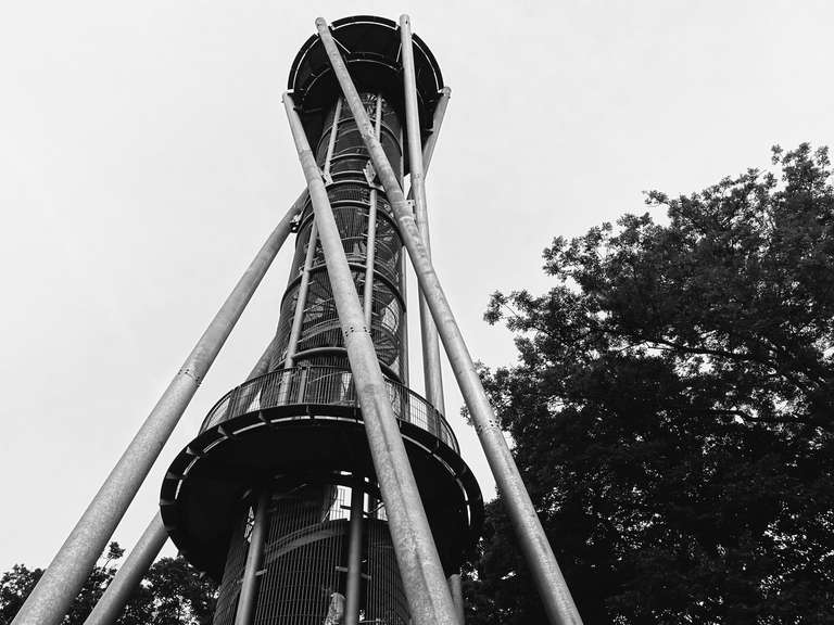 Wir beginnen die Tour gleich mit einer Variante (offiziell beginnt der Westweg am Schwabentor), steigen den Westhang des Schlossbergs hinauf, mit schönen Ausblicken auf die Altstadt. Auch lockt, trotz nur mäßiger Fernsicht, der Schlossbergturm. Schönes Beispiel dafür, was man im wirklichen Leben mit Geradenschar, Ringen und Spiralen so anstellen kann (meint jemand mit mathematischer Denkstruktur, womit sie recht hat). Viele Pfade führen durch das Gelände der ausgedehnten ehem. Vauban-Festung, laden zu eingehenderer Erkundung ein, doch wir wollen ja hinaus in den Wald.