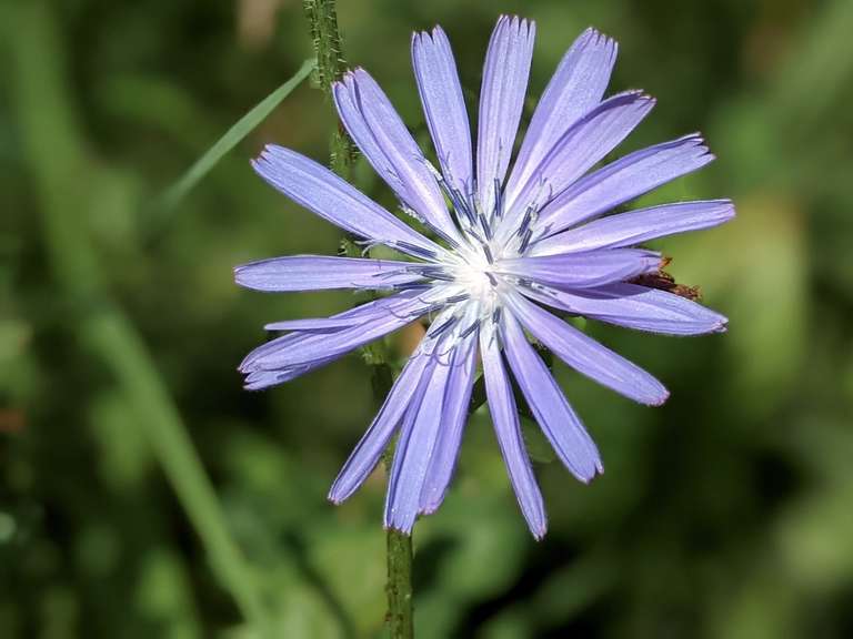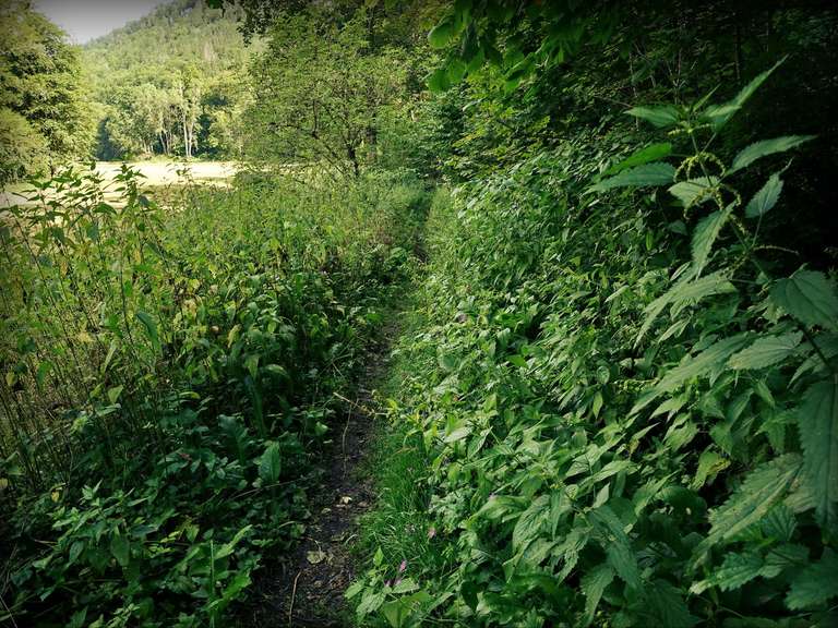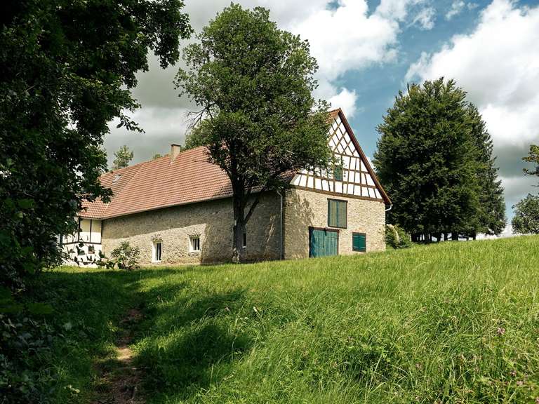 Der Bus bringt uns aus Tuttlingen zum Bahnhof Mühlheim, nach wenigen Schritten in der Siedlung erreichen wir den schmalen Pfad ins Lippachtal. Es wird wieder ein heißer Tag, doch dieser Pfad an der Ostseite des Tals liegt meist noch im tiefen Schatten (auf der Westseite verläuft eine wenig befahrene Landstraße), gute Streckenwahl also. Bald will uns ein Hinweisschild auf eine Umleitung höher am Hang lenken, kann man ruhig ignorieren. Es gab hier vor nicht langer Zeit größeren Windbruch im Wald, das Schadholz ist aber beseitigt und der Pfad durchgehend begehbar. Er ist auch ein "Vogel- und Nistkastenlehrpfad" mit Anregungen für die Belebung des heimischen Gartens (sofern vorhanden). An offenen Stellen finden sich sehr artenreiche Magerwiesen, die in letzter Sommerblüte stehen, dort geht es für uns etwas langsamer voran. Dennoch erreichen wir die Ausflugsgaststätte Lippachmühle bereits wenige Minuten, nachdem sie geöffnet hat. Alle Plätze im Hof sind bereits reserviert! Der Parkplatz füllt sich schnell, die Bedienungen haben zu rennen. Heute bleibt uns ein schattiges Plätzchen etwas im Abseits, ideal für die kurze Erfrischung.