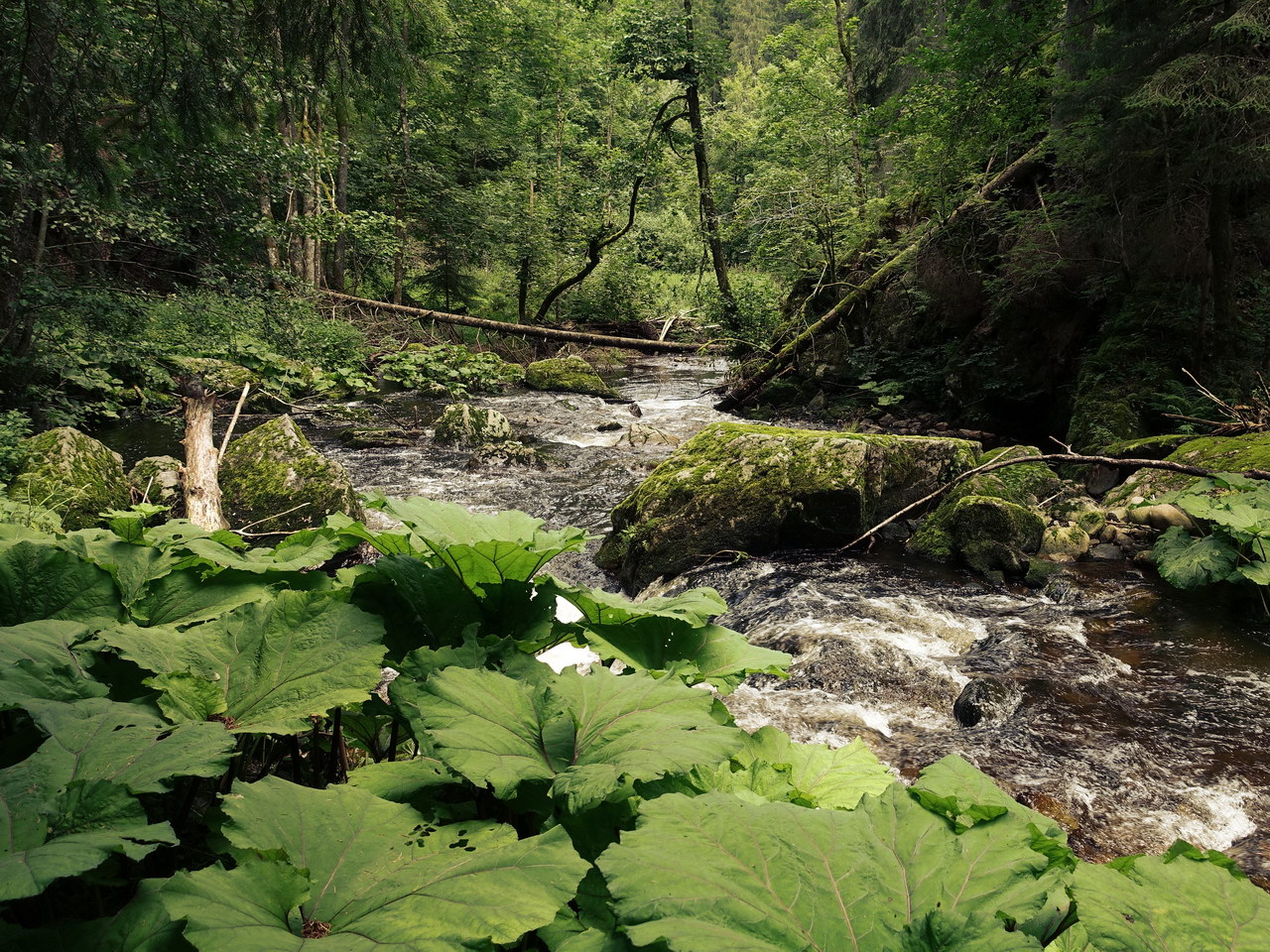 Die Wutachschlucht ist ein phänomenaler Naturort, wenn auch anders als erwartet. Zumeist kein spektakulärer Canyon, wie viele Besucher vermutlich erwarten, sondern eine vielgestaltige, struktur- und extrem artenreiche tiefe waldige Kerbe in der Landschaft, zumeist nur von schmalen Fußpfaden zurückhaltend erschlossen und kaum gezähmte Wildnis. Auf dem heutigen Abschnitt bis unterhalb der Schattenmühle wird das nur abschnittsweise richtig erlebbar, zwischendrin gibt es längere Wegepassagen auf Wirtschaftswegen hoch über der Schlucht, die einmal, zur Umgehung eines Seitentales, fast wieder ganz hinausführen. Aber dann gibt es wieder Stellen, wo man glaubt, ganz weit weg, womöglich auf einem anderen Kontinent zu sein, der noch mehr von solchen Naturlandschaften beheimatet.