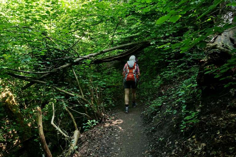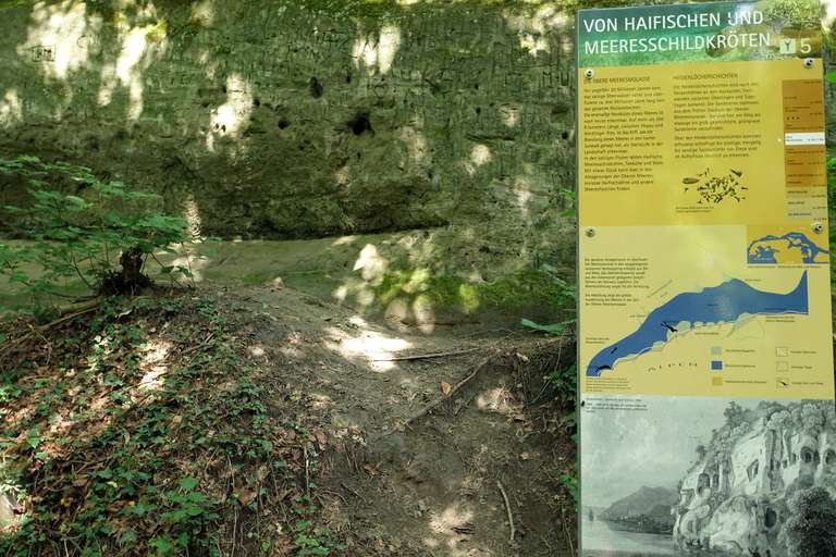 Abstieg nach Sipplingen auf dem Geologischen Lehrpfad, der sehr informativ gestaltet ist. Die Geologie der Molasse ist etwas kompliziert, wenn man sich die Zeit nimmt, kann man sie hier ganz gut verstehen lernen, konkrete Einblicke in die Gesteinsaufschlüsse eingeschlossen. Zügig sind wir zum Ortsrand hinuntergestiegen und gehen dann über dem Steilufer mit immer wieder schönen Ausblicken nach Ludwigshafen. Dort tobt am Ufer das Badeleben. Wir erfrischen uns zunächst nur innerlich. Die Wartezeit auf den Bus, der uns über Stockach nach Tuttlingen bringt, überbrücken wir in der sehr freundlichen Weinbar am Bahnhof. Dort ist es ruhig – aber wirklich mediterran. Der Abend in Tuttlingen verläuft dann unterhaltsam schwäbisch-bayerisch-sizilianisch bei Pizza und Craftbeer, das taugt uns.